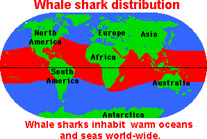 Whale sharks are found worldwide in the warm oceans from the equator to about ±30-40°
